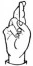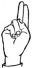 На ћирилици написано ЈЕФИМИЈА ХАРАЧИ састоји се из 14 слова [?]. Исписано ћириличном једноручном азбуком за глувонеме: